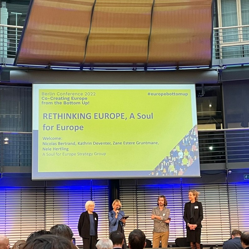 Stiftung Zukunft Berlin and the civil society initiatives A Soul for Europe, Wir sind Europa (We are Europe) and Cities for Europe once again organised the 2022 Berlin Conference, which was titled “Co-Creating Europe from the Bottom Up!” and took place at the Allianz Forum Berlin, next to the Brandenburg Gate.